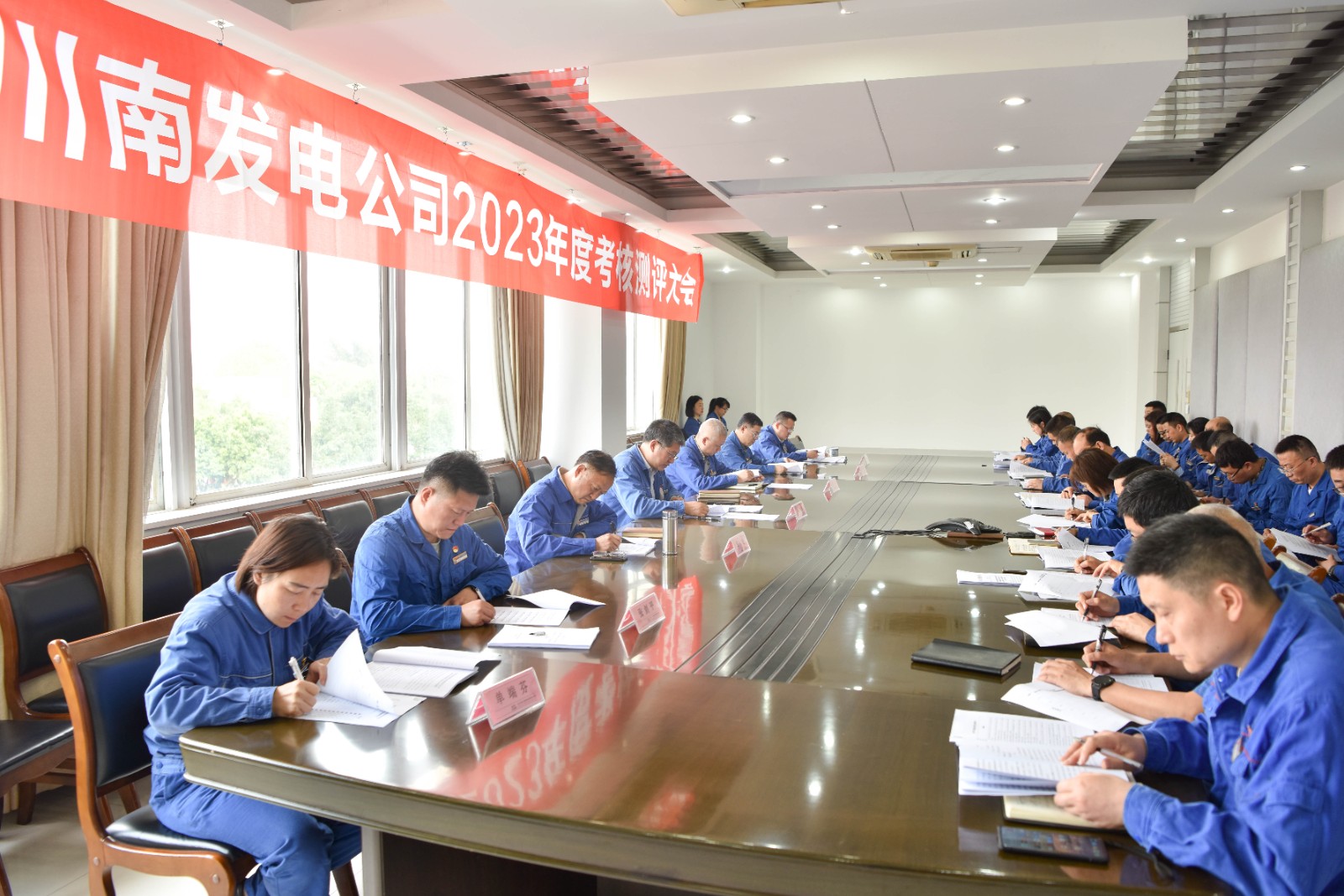 4月1日上午,川南发电公司组织领导班子成员、中层管理人员及员工代表共36人,在行政办公楼三楼会议室对2023年度领导班子、领导人员以及干部选拔任用工作“一报告两评议”进行考核测评。考核测评会由党委书记、董事长刘胜金主持。