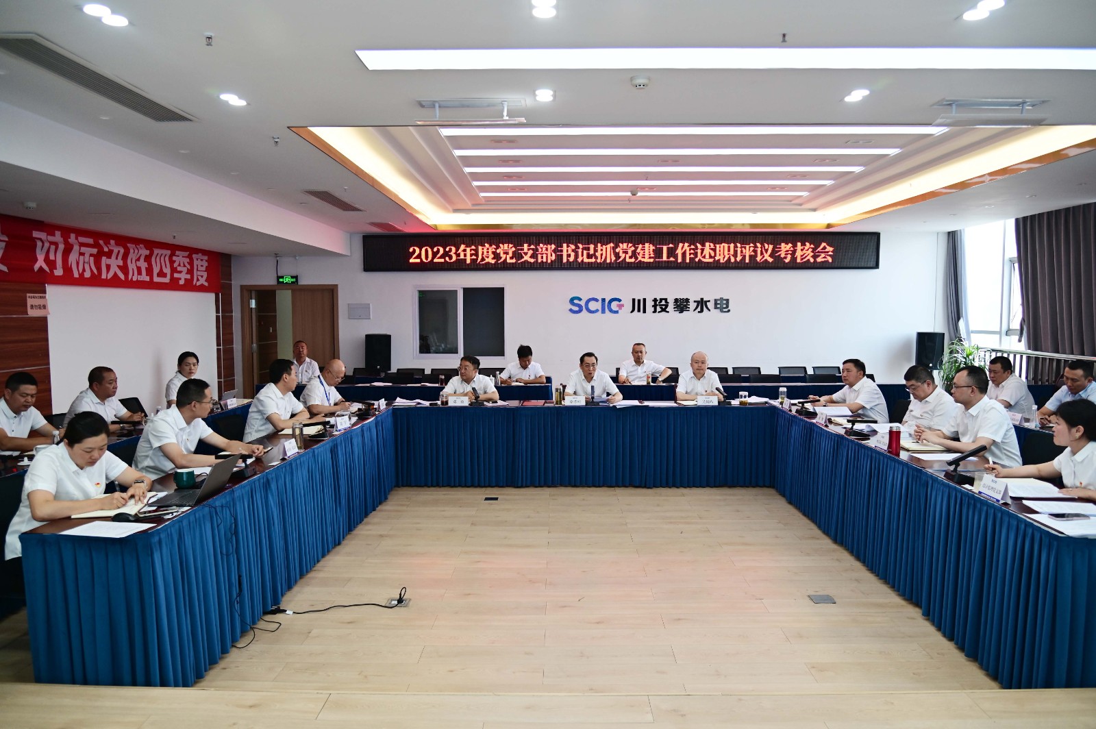 为深入学习习近平总书记关于党的建设重要思想,进一步强化党支部书记抓基层党建工作,3月29日,攀水电党总支组织召开2023年度党支部书记抓党建工作述职评议考核会,公司领导班子、各支部书记、支部委员、党员代表共计25人参加。会议由公司党总支副书记、董事会秘书、工会主席邓勇主持。