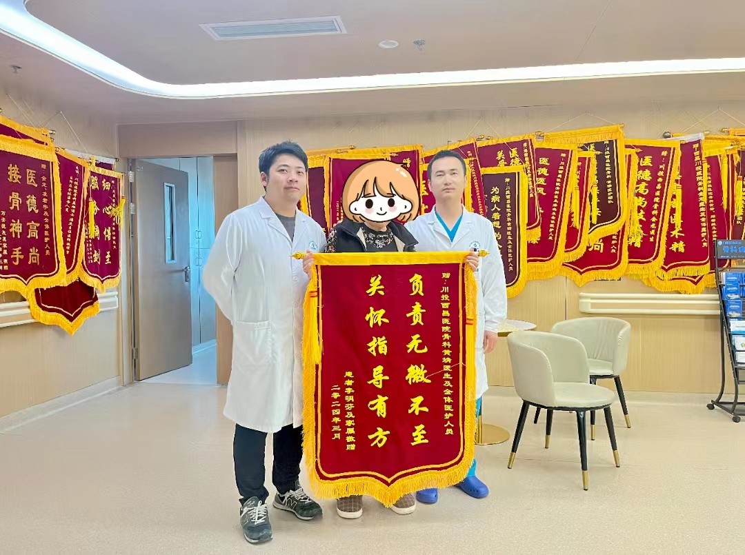 李女士(化名)双侧膝关节骨性病变,在骨科行全部膝关节置换(左)术后,恢复良好,重燃行走“膝”望,对医生高超的技术和贴心的护理表达赞许。
